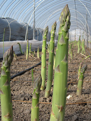 収穫されるグリーンアスパラガスはハウス栽培の“春芽”からスタートし、露地栽培、ハウス立茎栽培の“夏芽”へと切り替わり収穫されます。そして、冬には美幌町の気象条件を十分に生かし伏せ込み栽培を行っています。国産アスパラガスが端境期になる11月でもアスパラガスを収穫することができるのです。