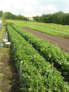 美幌町では、女性を中心に20戸の生産者がハウスの中や露地畑で栽培しており、5月上旬から播種が開始され、収穫時期が重ならないように計画的に栽培し、7月中旬から9月下旬までと長期間収穫できる体系となっております。