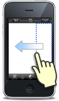 ブックが左開きの場合、画面の3分の1にあたる領域をタップするか、右から左に画面をフリックするとページをめくることができます。